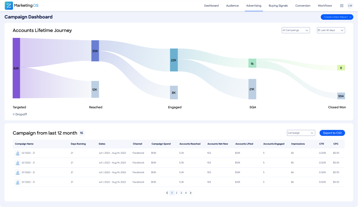 The Marketing Campaign Page is the central hub for tracking performance across all active campaigns.