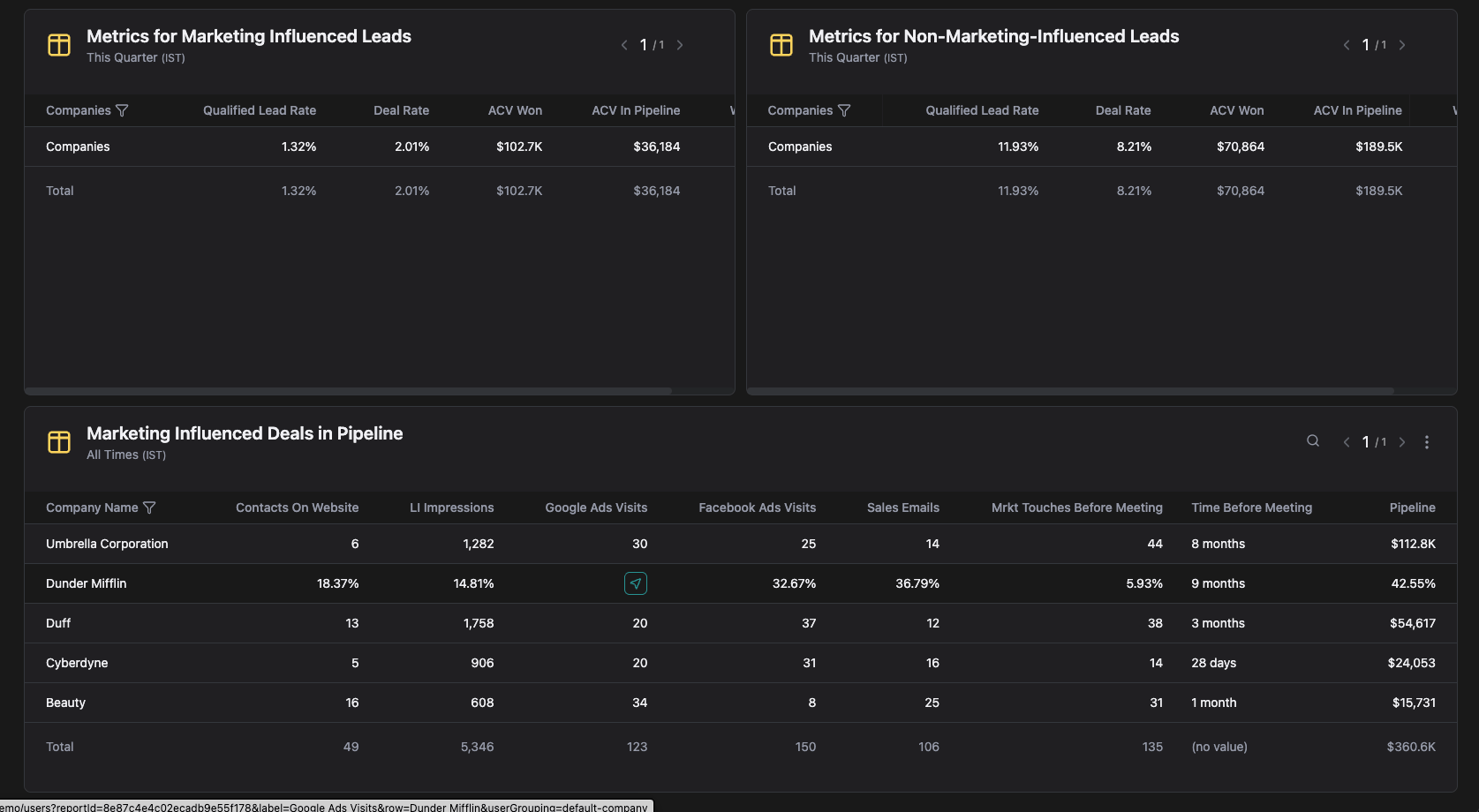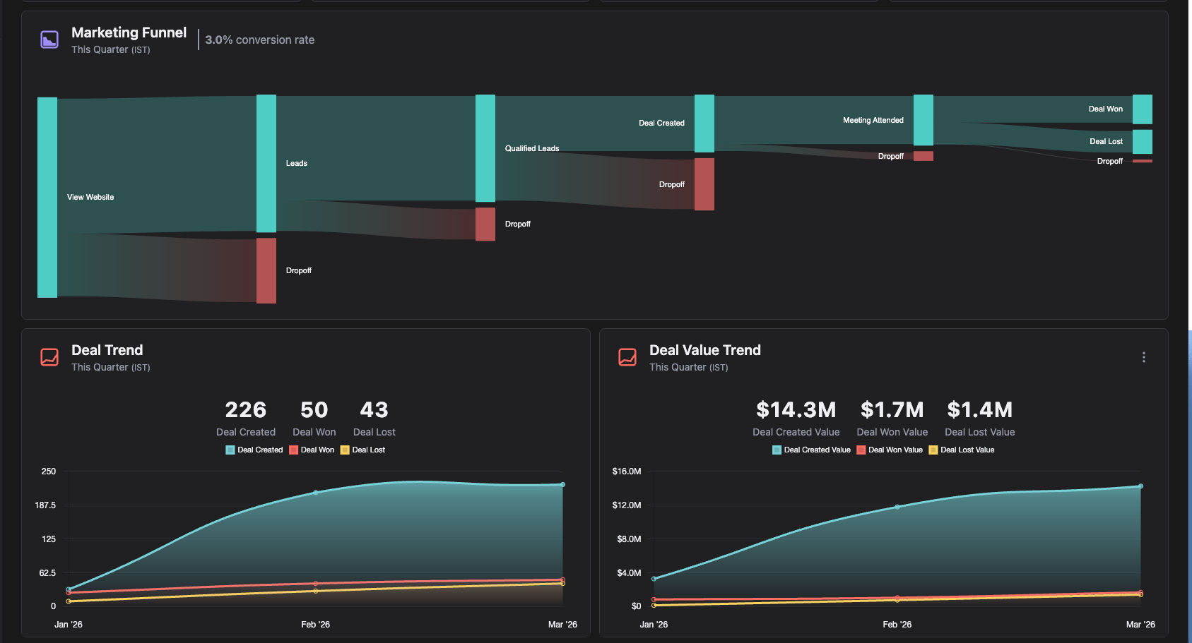 Marketing and sales operate in silos — marketing has no visibility into what happens to the leads they generate, and sales has no clear picture of where those leads came from. Without this alignment, measuring performance and building a coherent growth strategy becomes nearly impossible.To solve this, two teams worked in parallel to build a connected ecosystem: a Campaign Dashboard for marketing performance, a Pipeline Dashboard for sales, and a Unified Funnel Dashboard bridging both. My focus was the Campaign Dashboard — giving marketing teams full visibility into campaign performance, from first touch to closed won.