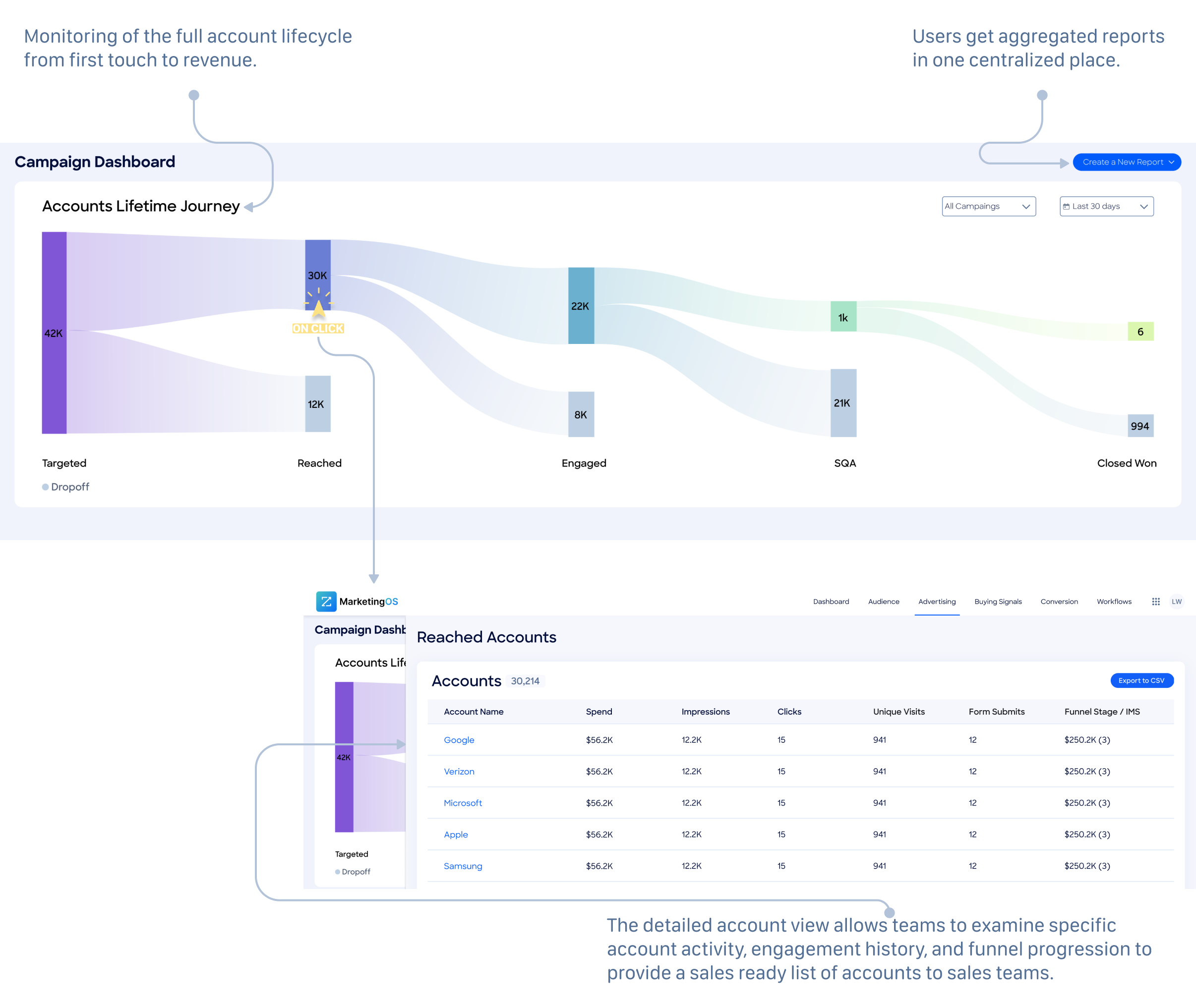 Impact Analysis: Partially supported - dashboard enables account prioritization and comparison but requires multi-channel integration for complete optimization