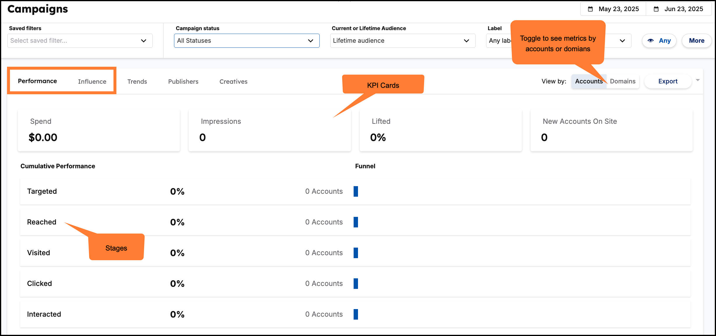 Goal: Report on funnel metrics for current campaigns