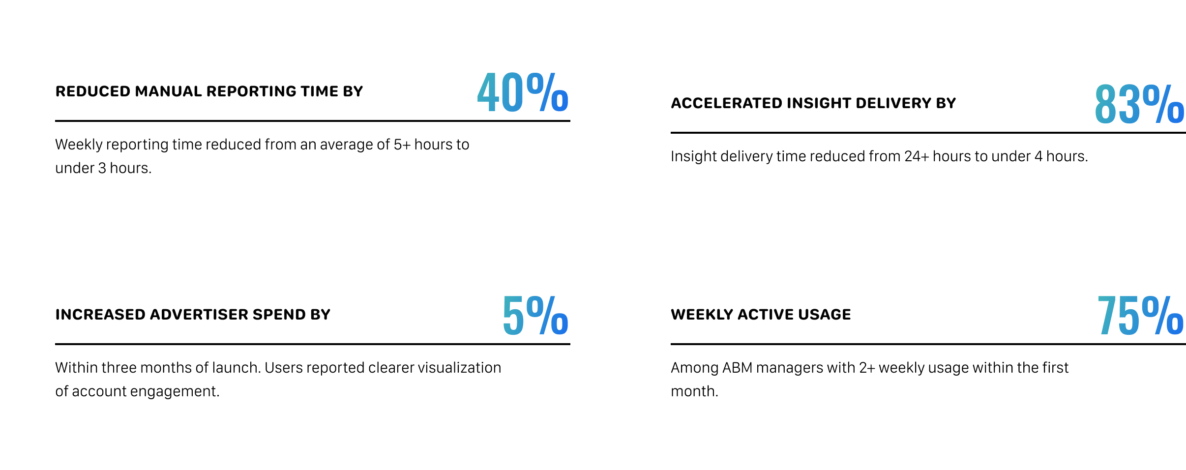 Among ABM managers with 2+ weekly usage within the first month.